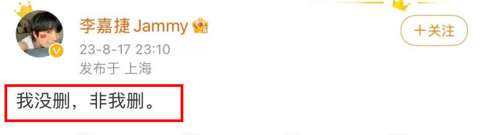 可没过多久,李嘉捷的发文就删除了,他本人再发一文称“我没删,非我删”,然后,这条发文也被删除了。