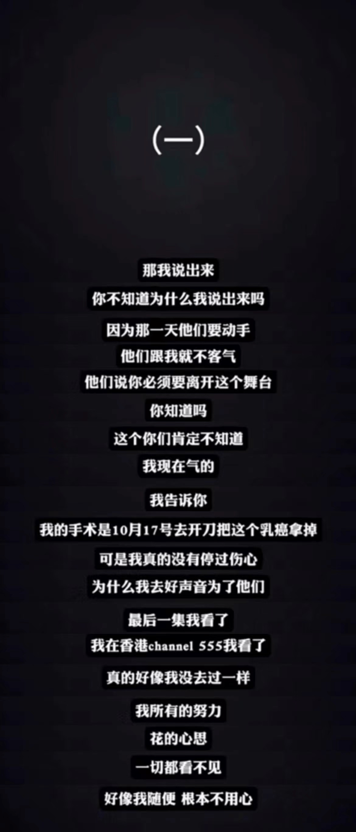 李玟还表示,节目录制当天自己是忍痛录制并当场曝光黑幕,自己不在乎节目合同和酬劳,这么做完全是为了这群热爱音乐的学员。