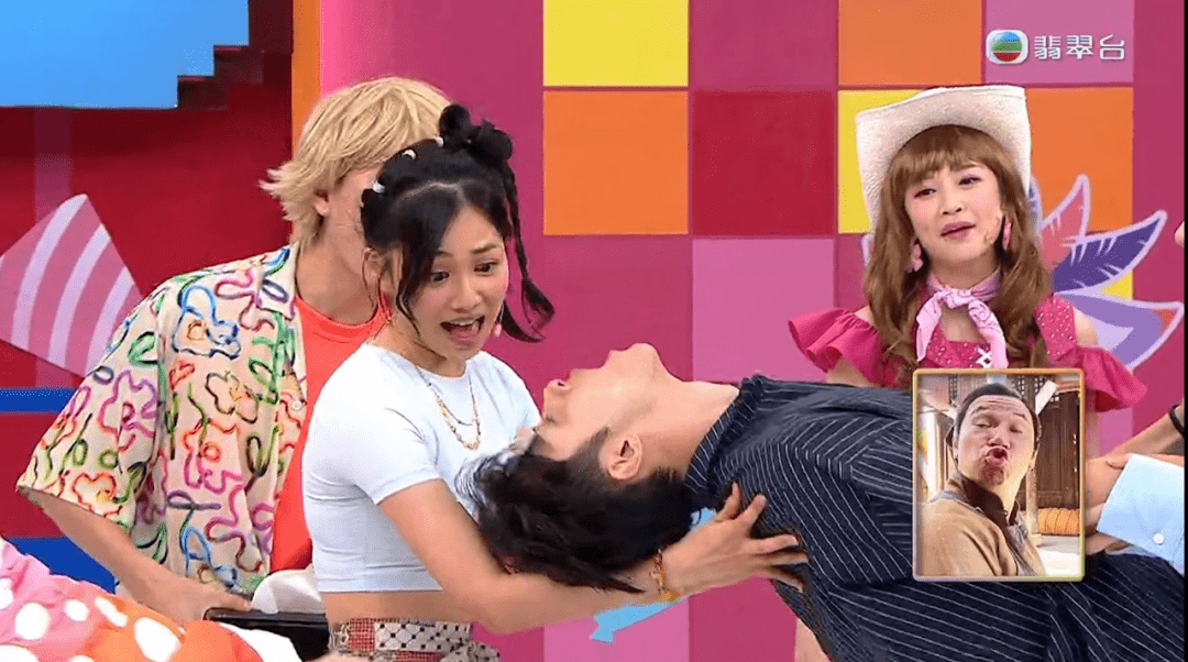 原标题:奖门人爆搞笑一幕!林夏薇胸压金刚,TVB小花激吻何广沛脖子