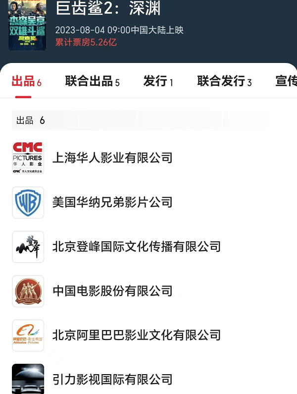 吴京的公司北京登峰国际还是《巨齿鲨2》第三大出品方,分享票房收益。