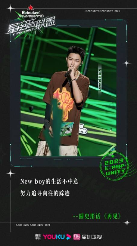 意气风发的少年怀揣着对说唱音乐的热爱一路前行,史宗伦不仅在说唱音乐节目中有着亮眼的表现,更是不少线下音乐节中闪亮的新星,从MAX超级音乐嘉年华、抖InCity跨年音乐会长春站、潮CHAO音乐嘉年华-上海站到即将盛大开启的大蘑菇音乐节,史宗伦这位说唱黑马,一次次给大家带来超燃舞台,带着对中文说唱的满分热爱,在他的音乐宇宙里步履不停,探索不止,演绎自己热爱的音乐作品,传递正能量,少年未来可期!