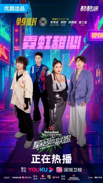 8月4日,优酷×《星电音联盟》第6期播出,本期主题为单身派对,来自种梦音乐D.M.G的史宗伦Xyber(D.M.G)和崔三金SanJin、 叨叨Doggie、Nini刘嘉妮组成的爱情三十六计队给大家带来了一首甜度爆表的歌曲《霓虹甜心》。满屏的粉红泡泡,梦幻灯光洒满舞台,超甜开场,音浪能量大爆发,温柔与动感相结合的曲风,现场氛围甜度超标,浪漫气息扑面而来。