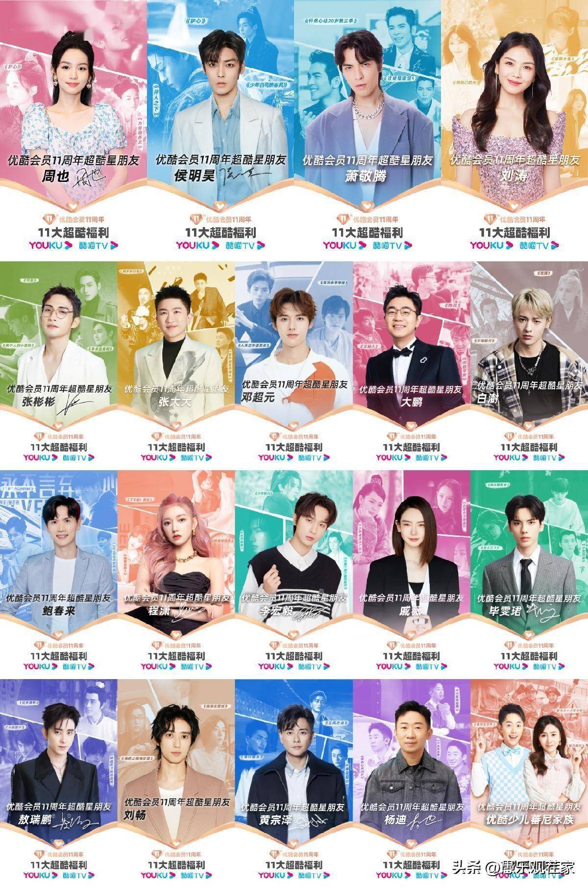 说完这绝对宠爱的11大超酷福利,优酷会员11周年还集合了侯明昊、毕雯珺、刘涛、周也、黄宗泽、萧敬腾、程潇、杨迪、张大大等19位「超酷星朋友」,群星璀璨,排面拉满,庆生氛围十足!