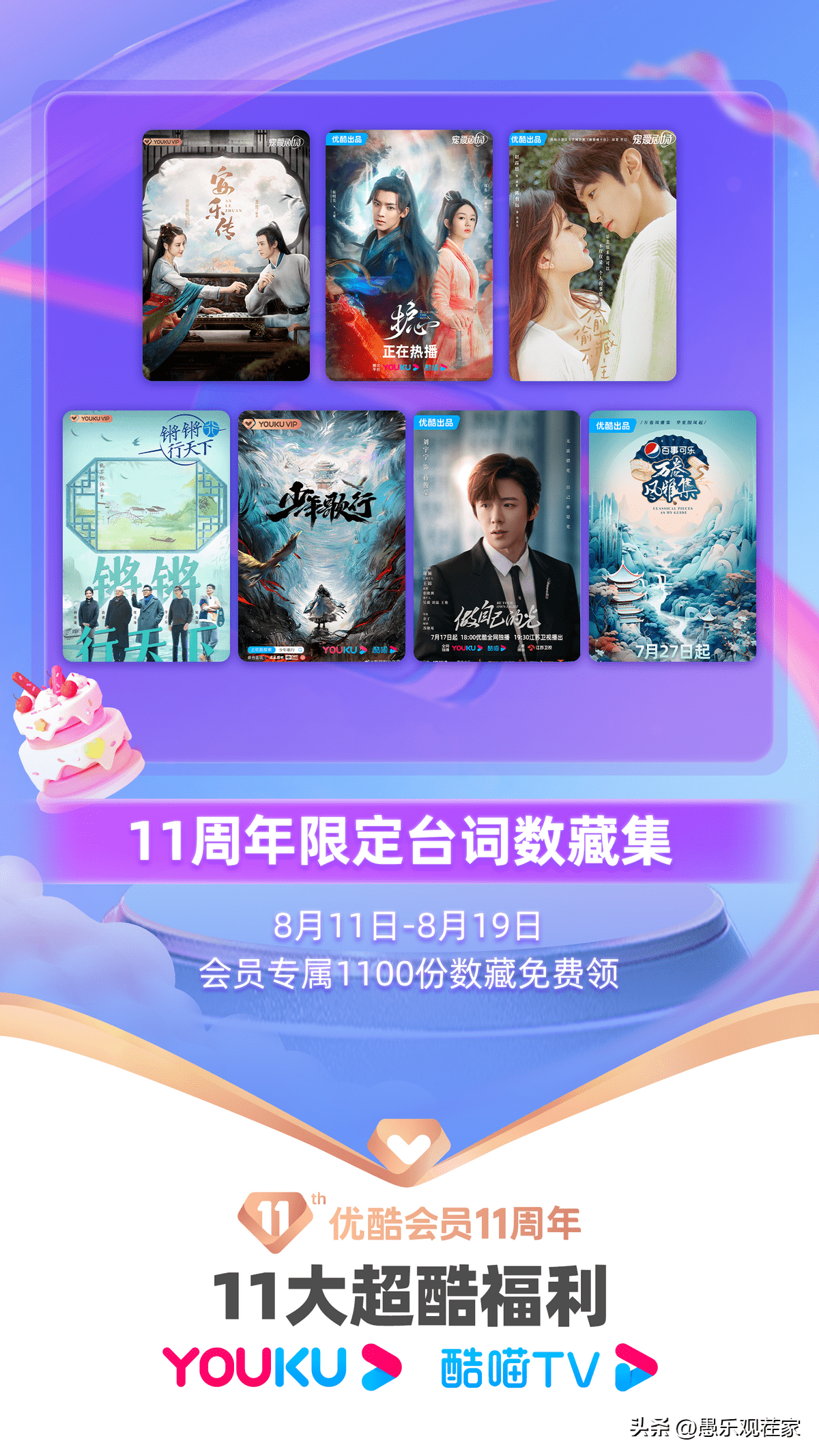 8月8日,优酷会员11周年庆生活动正式官宣,11大超酷福利,重磅来袭!