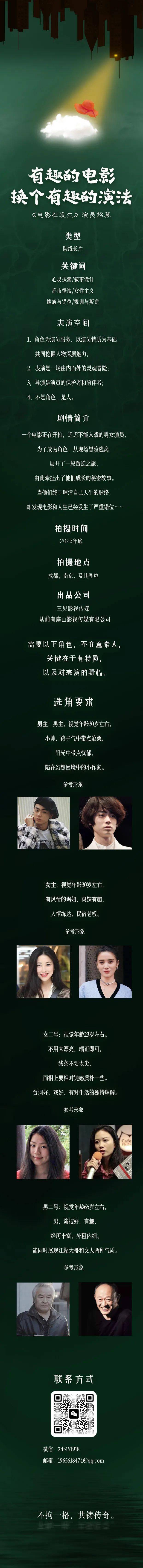 本栏目发布组讯由小编采集与业界共享,组讯如有变化请以实际情况为准。如果遇到剧组收费情况,请谨慎对待并私信官微@戏客Seeker,我们会公示问题组讯并及时处理。谢谢。