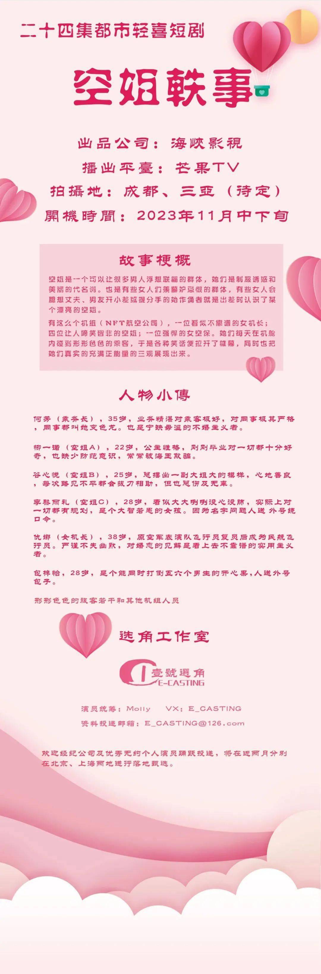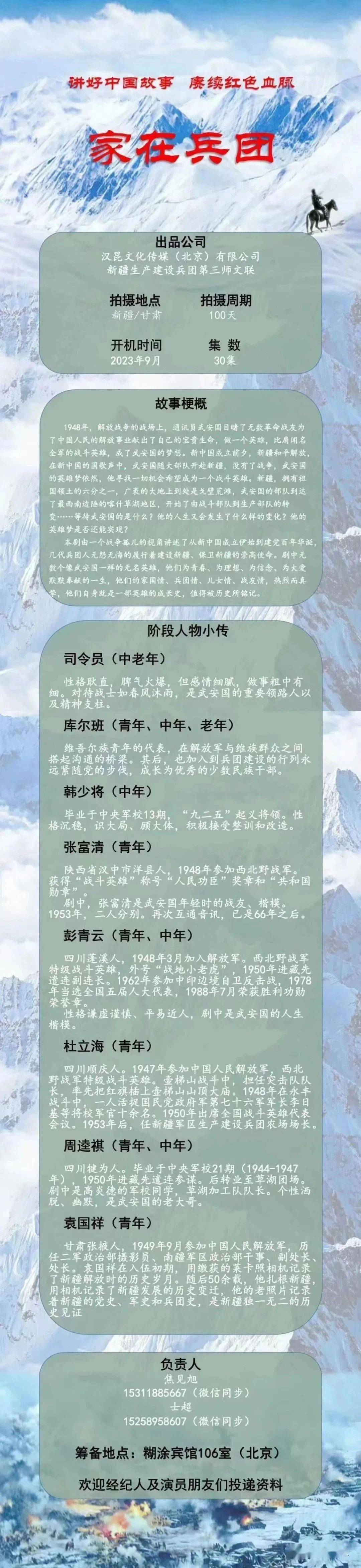 剧中角色较多,欢迎各大经纪公司及演员朋友投递资料。