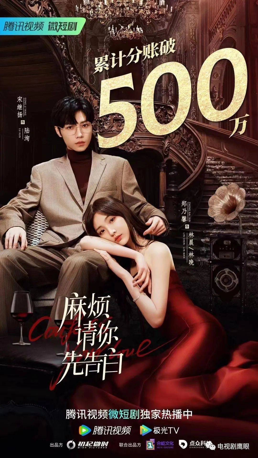 由上海初起微时文化传播有限公司出品,合屹文化传播有限公司与点众科技股份有限公司联合出品,制片人何伟,安吉尔编剧,安冬导演,郑乃馨、宋继扬领衔主演,董颜、张永博主演,赵帅、刘亚锟特别出演的甜宠剧。开播首日播放热度16807,从剧集上线到7月28日,累计分账500万!