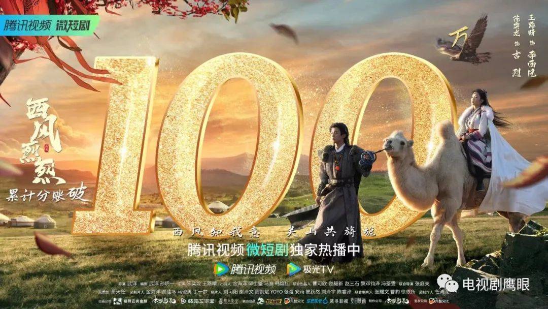 由武洋执导,武洋、孙明一编剧,陈奕龙、王路晴、范迪禹、诺敏·达莱主演的古装甜宠剧《西风烈烈》,从剧集上线到5月26日,累计分账100万。