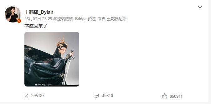 搜狐娱乐讯 8月7日,正值电视剧《苍兰诀》播出一周年的日子,早前,该电视剧的出品人王一栩以及电视剧的角色号都发文庆祝,稍晚,男主角东方青苍的饰演者王鹤棣也发文庆祝,并配文:“本座回来了 。”引发热议。