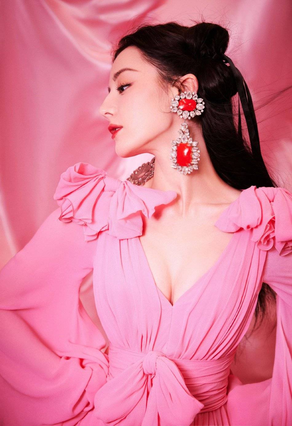 原标题:迪丽热巴穿芭比粉裙大秀事业线!天使面孔魔鬼身材太性感