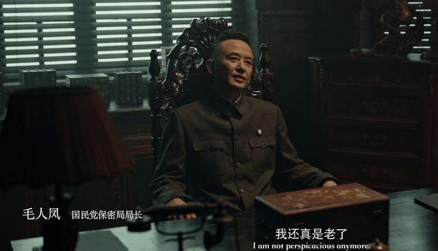 而老戏骨侯长荣饰演的毛人凤,开场一场戏,几句台词,那种强烈的压迫感已经从屏幕渗出来,令人不寒而栗。