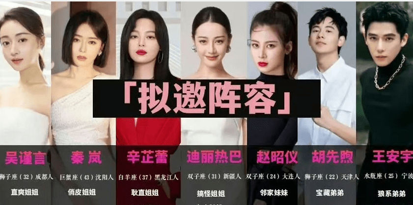 与上一版拟邀名单相比,这一次传出的阵容依旧是5女2男的组合,分别是秦岚、吴谨言、迪丽热巴、辛芷蕾、赵昭仪、胡先煦以及王安宇。几位嘉宾年龄跨度缩小,应该更能玩到一起,尤其是秦岚和吴谨言的合体,可谓是话题性拉满,让人分分钟梦回《延禧攻略》。