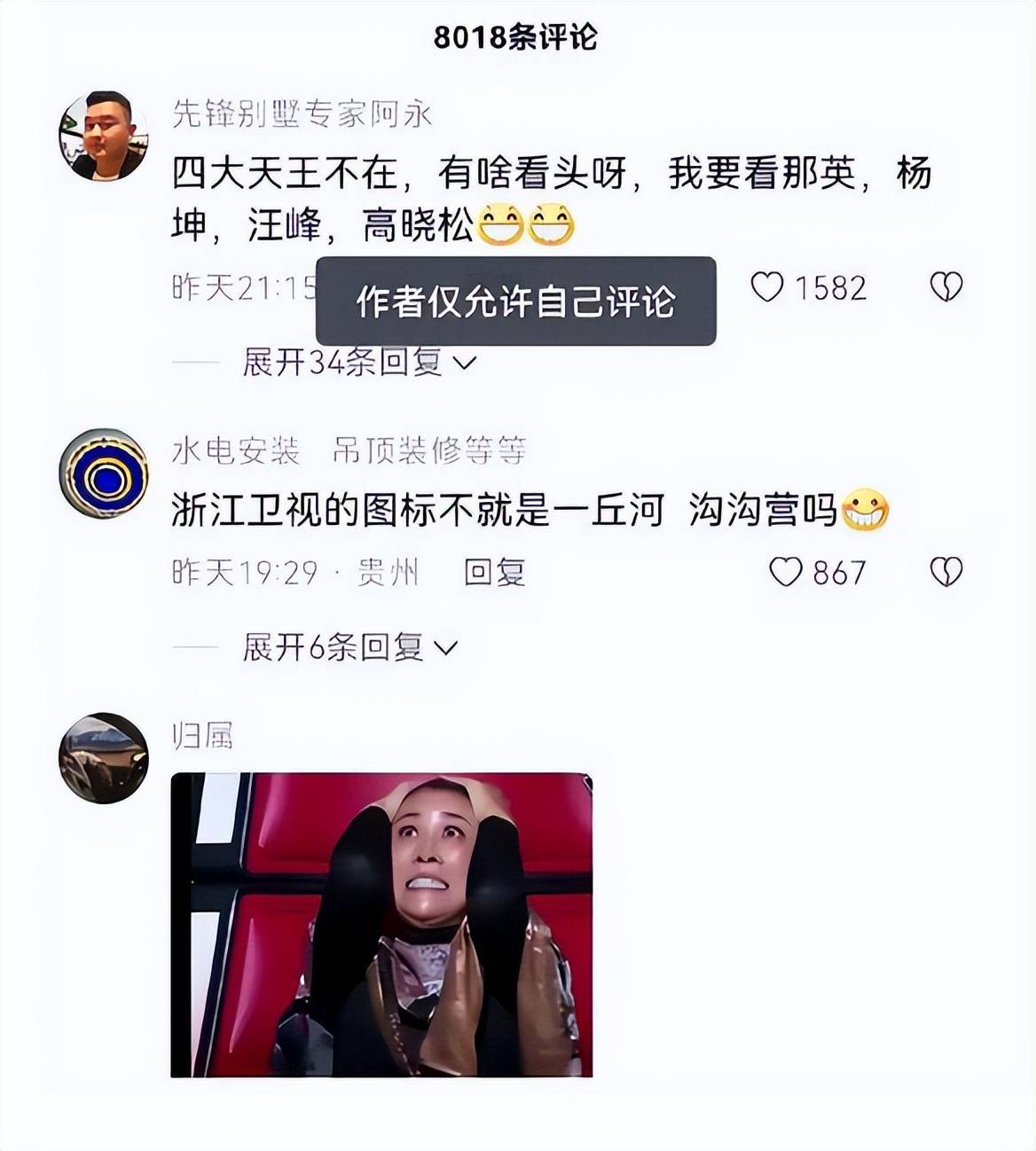 网友都在《好声音》微博下面疯狂吐槽,有人说:“四大天王不在了,《中国好声音》有啥看头,要看那英、汪峰、杨坤、高晓松!”