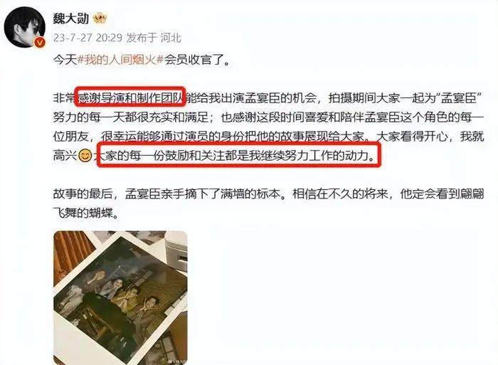 魏大勋先是感谢了制作团队给他这个角色,还感谢了支持他的观众朋友,又表了表决心称会继续努力,最后一句“他定会看到翩翩飞舞”还展示了点野心。