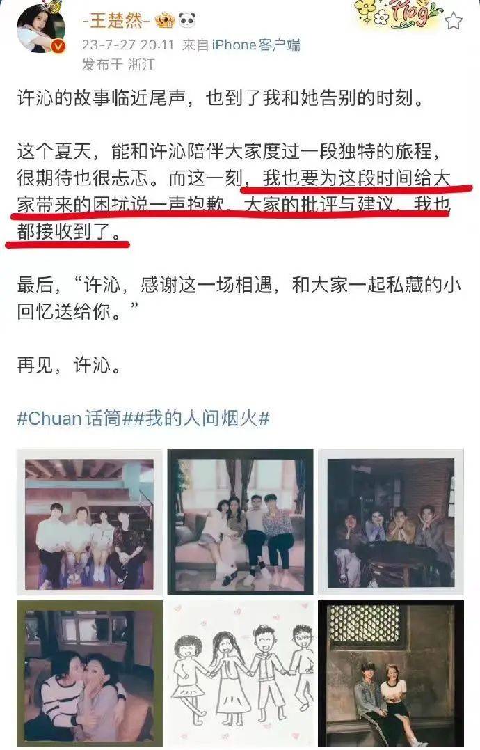 该剧结束后,王楚然道歉发文称:我要为这段时间给大家带来的困扰说一声抱歉,大家的批评与建议,我也都接收到了。