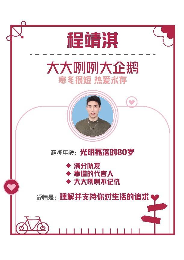 被问及为何会选择前国家乒乓球队运动员程靖淇作为恋综嘉宾时,导演陈智雄说:“其实我们选角时间跨度很长,有4-5个月,通过我们接触了解,会觉得这个人性格是比较有趣的,不止我们刚刚看到的这些,他有他内在坚定和坚韧的那一部分,有一个相对轻熟男人29岁应该有的东西,他会用一种幽默和自嘲的方式表现。”制片人杨卓也补充道:“对我们来说,其实你的身份、你的职业、你的年龄,其实这些都排在真正的恋爱诉求之后。也就是说,大淇确实拥有想找到一个女朋友并且踏入一段美好的甜甜恋爱的核心诉求,所以说在这样诉求的基础之上,我们会去了解到他的幽默、坚韧等等。不同经历、不同工作会给性格带来不一样的色彩,所以我们今年会选择这么多的嘉宾、这么多不同的面貌。”