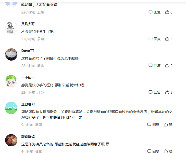 还有人问:“我一直好奇演艺圈的情侣,自己的爱人跟别人因为工作的关系亲亲,真的不介意吗?”,还有网友直接喊:“鹿晗快来!!!”