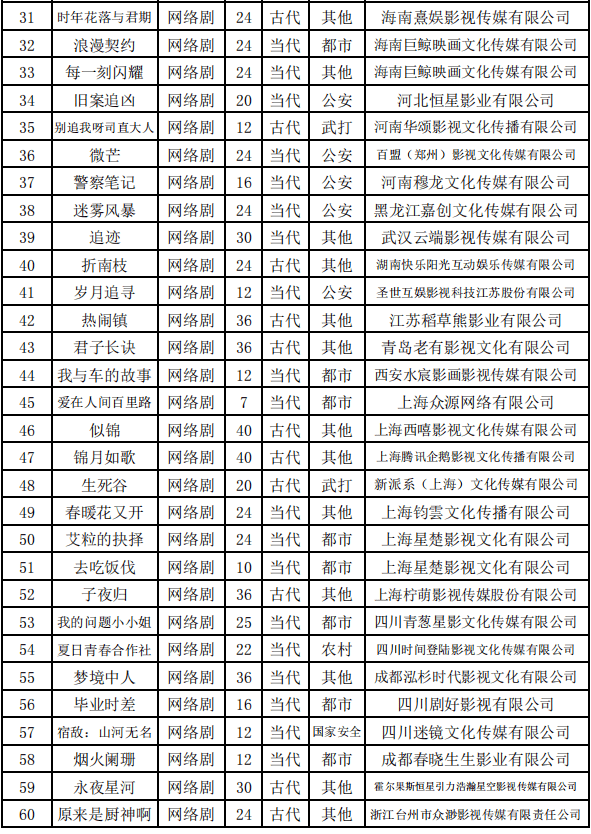 柠萌、芒果TV、西嘻、稻草熊、新派系等影视公司也有新项目在列。