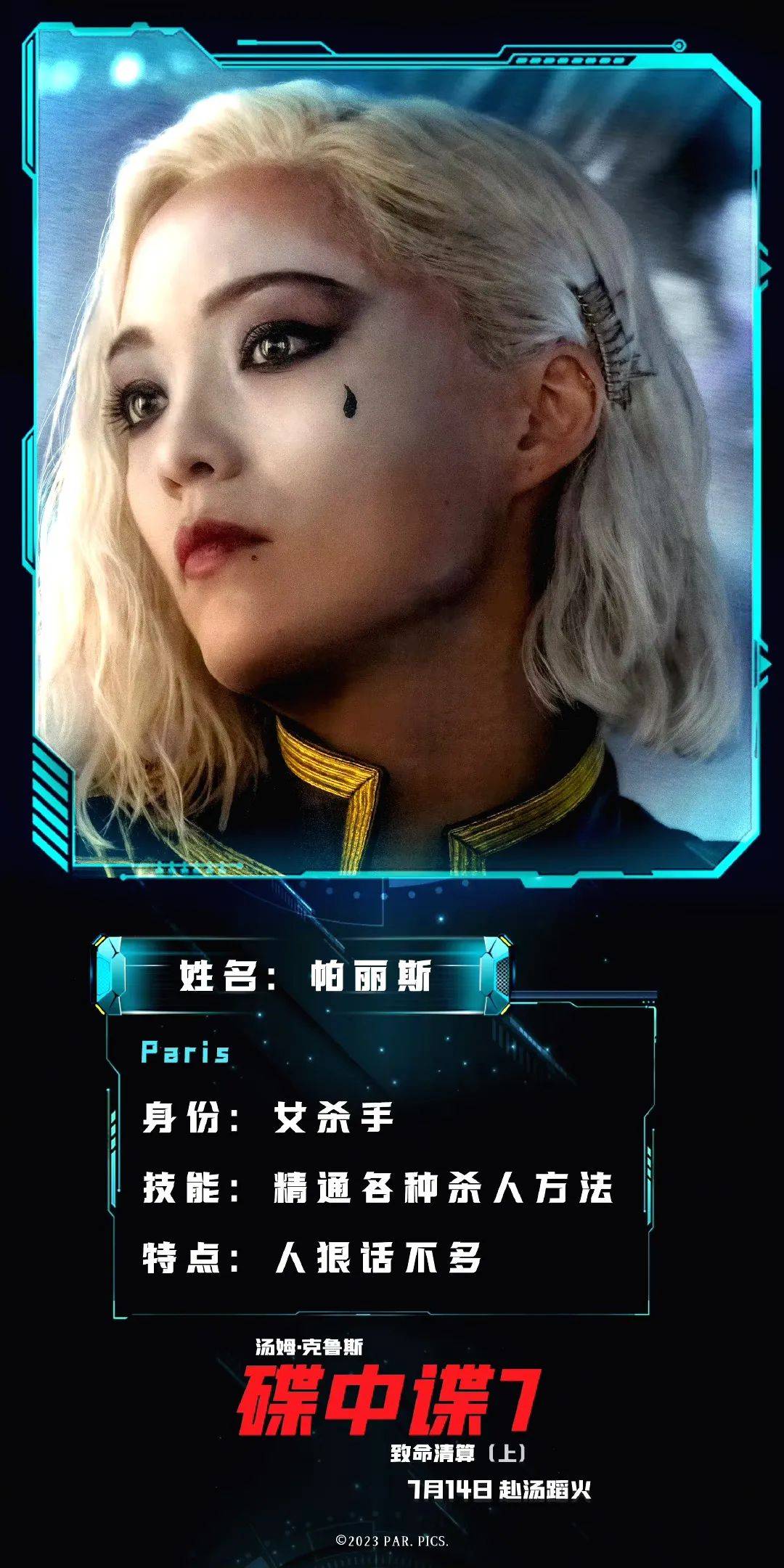 庞·克莱门捷夫自从在《银河护卫队2》饰演螳螂女,开始走红。这次,她在《碟中谍7》饰演帕丽斯,身为一个女杀手,她精通各种杀人的方法,人狠话不多,非常冷艳!