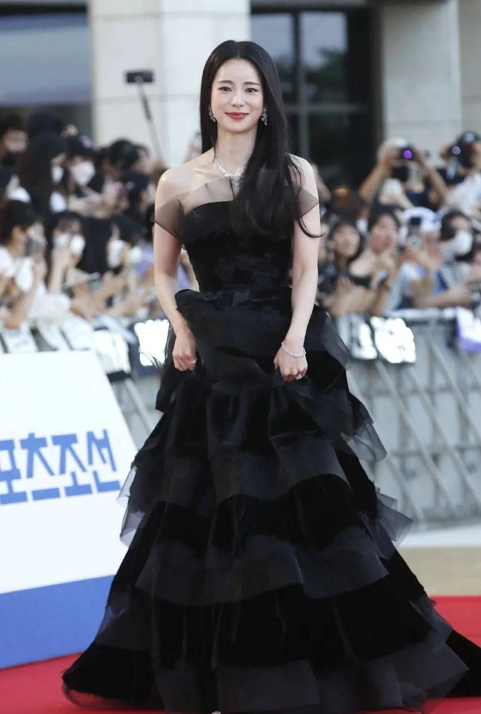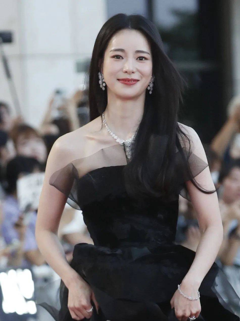 林智妍也是一袭黑色纱裙,靓丽登场!