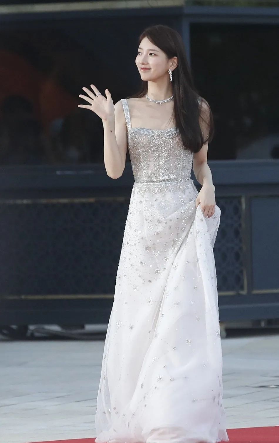 凭借《安娜》获得最佳女主角的斐秀智,身穿一袭白色吊带连衣裙,微微一笑很倾城!