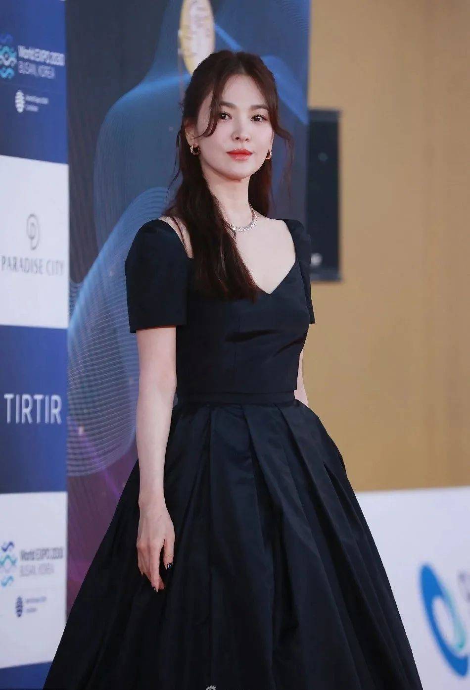 凭借《黑暗荣耀》再度大火的韩剧女王宋慧乔走上红毯,她一袭黑色衣裙,明艳大气!