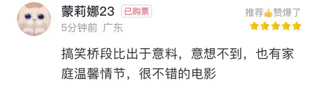 电影不仅让观众轻松愉快、捧腹大笑,更是用不靠谱的家人们一段段的笑料,让观众体会到家的温暖和力量,这也是影片要传达的正能量吧。